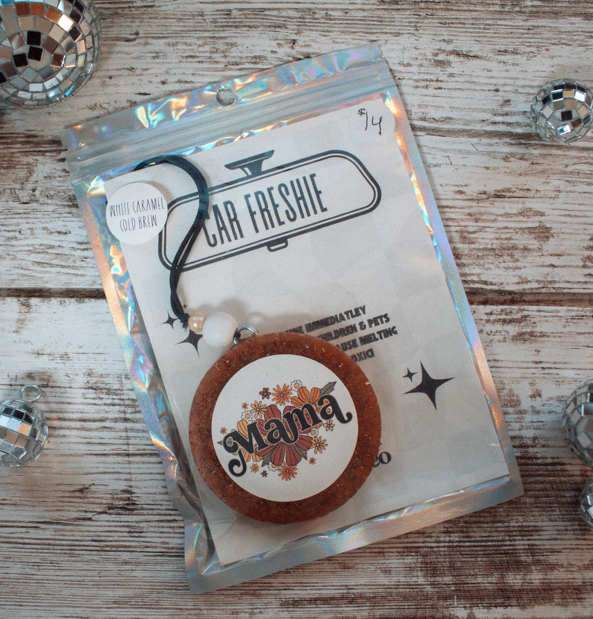 Give your car the aroma upgrade it deserves with our White Caramel Mocha Scented Car Freshie! The scent works harder than your GPS to keep your ride smelling amazing. Perfect for commuters, road trippers, and anyone who's tired of their car smelling like yesterday's takeout!
