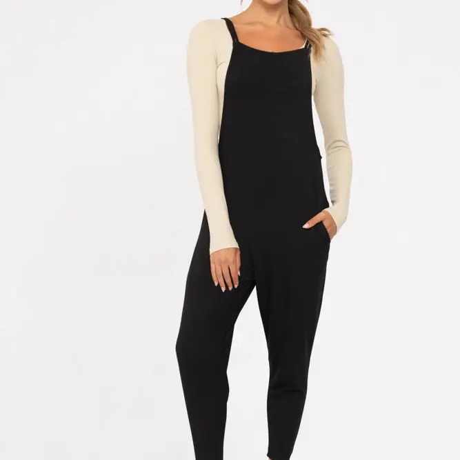 Jumpsuit in Black - Drop Crotch - Double Strap