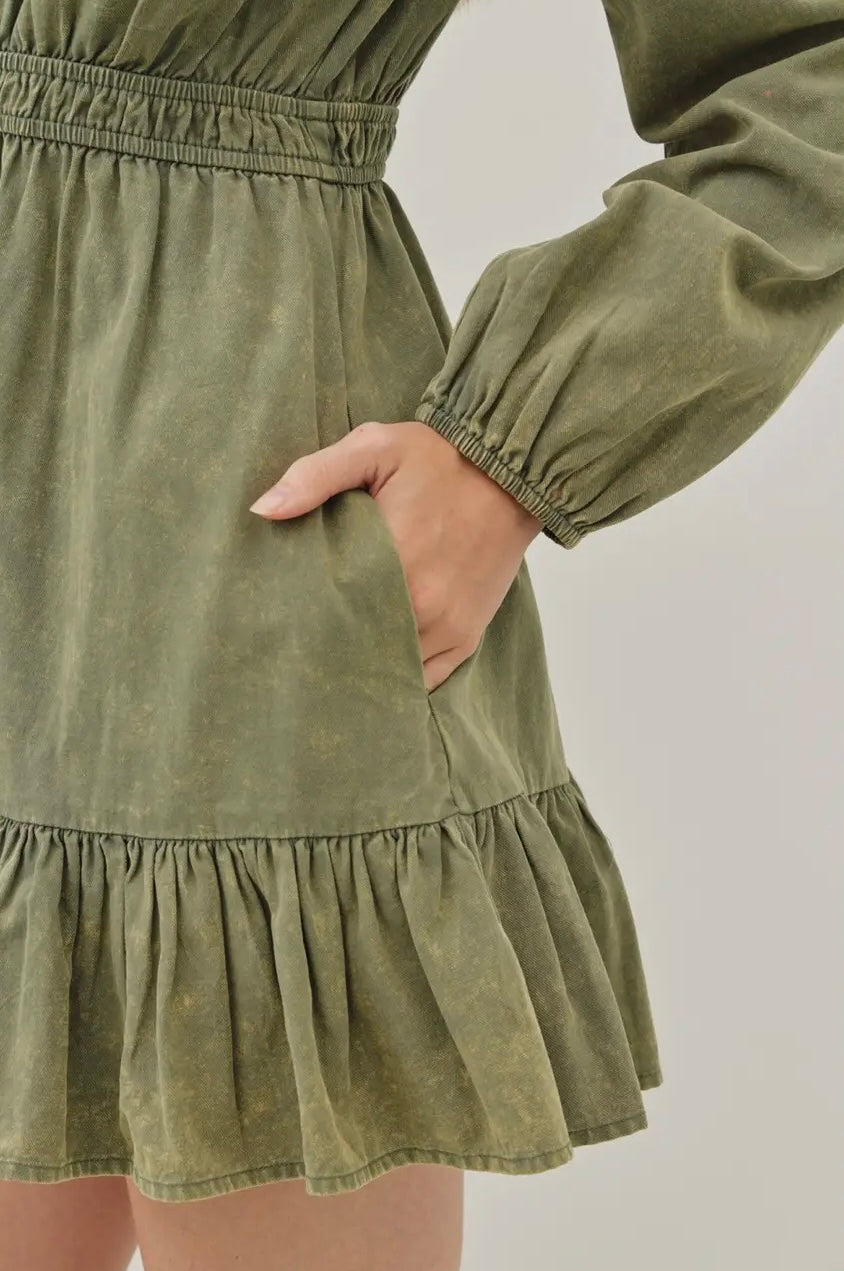 The Olive Dress is a comfortable and stylish addition to any wardrobe. Made with soft material, this dress is perfect for all-day wear. It also features convenient pockets for added functionality. Dress up or down for any occasion with this versatile piece.